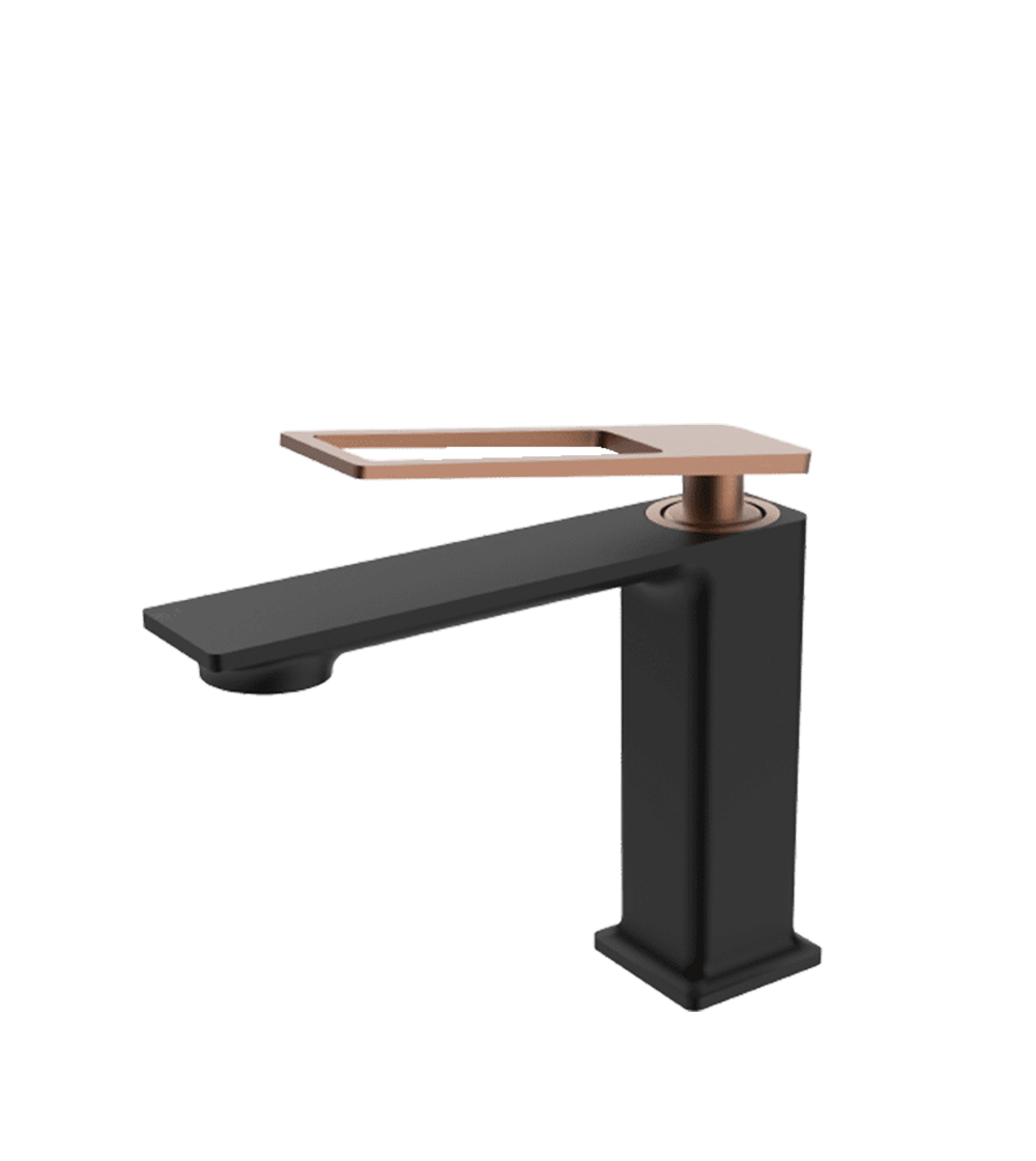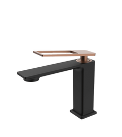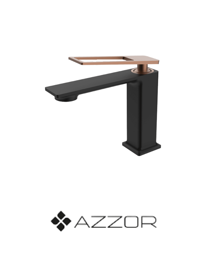 AZZOR - Grifería caño bajo Azzor Carakto Negro / Oro Rosa Mate - AZZ-AZ76011B/SRG-FP