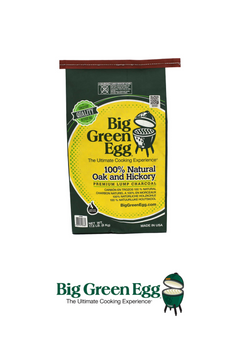 El carbón de roble y nogal Big Green Egg se fabrica en EE. UU. con madera dura 100 % natural. Es fácil de encender y suele estar listo para cocinar en unos minutos, y arde con más calor y de manera más eficiente que las briquetas de carbón. El carbón en trozos produce menos cenizas, por lo que hay un mínimo de desperdicio y limpieza... lo que ofrece valor en cada bolsa.