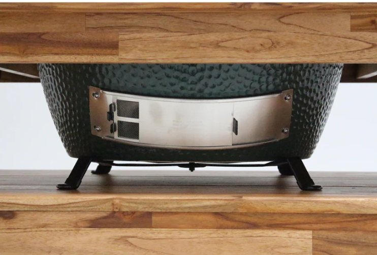 El nido de mesa de metal, que permite el flujo de aire debajo del EGG, ahora es un componente opcional para todas las mesas Big Green Egg. El nido de mesa también es útil para mesas personalizadas y cocinas al aire libre.