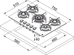 FRANKE - Estufa a gas cristal negro de 75cm - FHCR 755 4GTC HE BK C- 106.0374.283